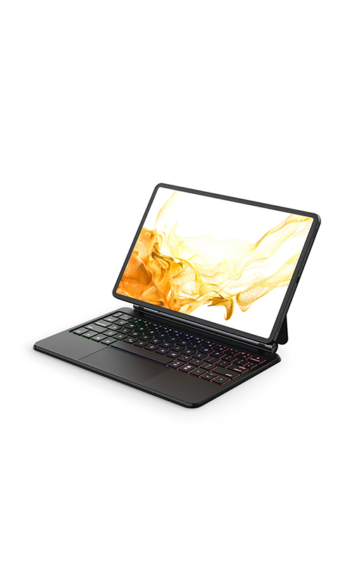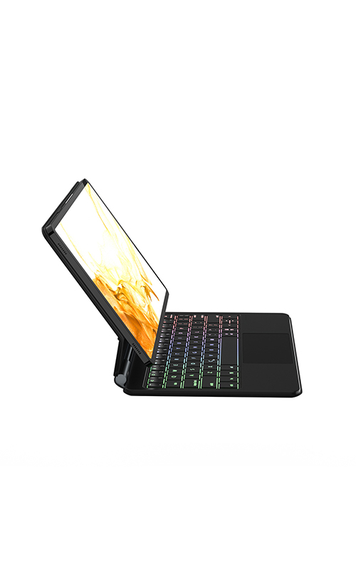 Tabletaren ordenagailuaTeklatu magikoaangelu anitzeko doikuntza onartzen duen stand diseinu flotagarria hartzen du. Erabiltzaileek iPad-en ikuspegi angelua doitu dezakete beren beharren arabera, ikuspegi eta funtzionamendu esperientzia erosoagoa lortzeko. Bien bitartean, diseinu flotagarriak aireztapena eta beroaren xahutzeko efektua hobetzen laguntzen du eta produktuaren zerbitzuaren bizitza luzatzen du.